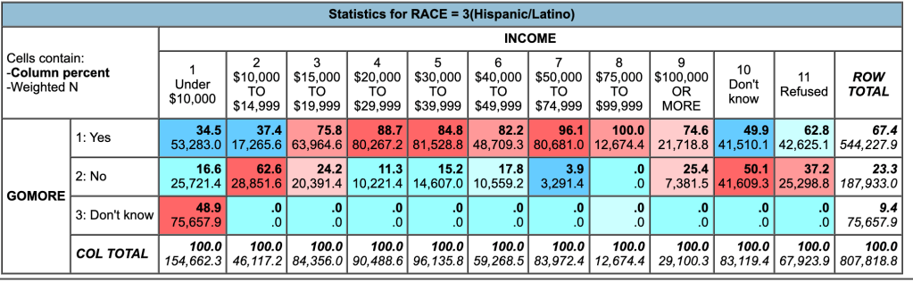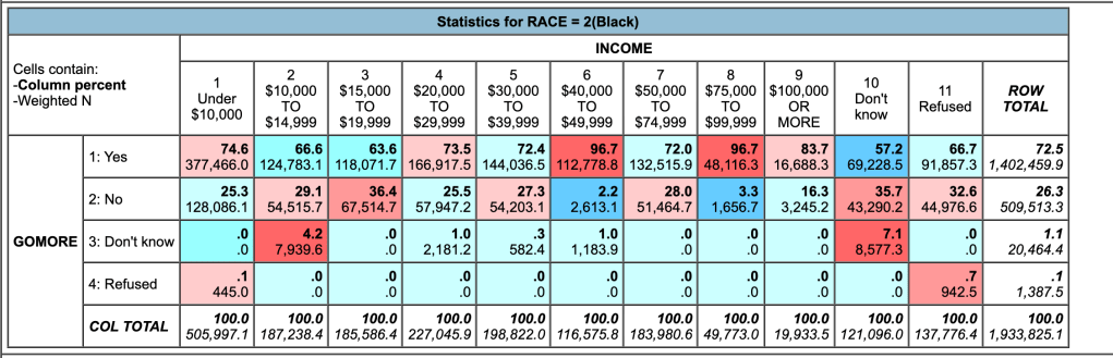 Here, we have a cool example that could help inform policy around increasing arts accessibility. The willingness of people to see arts in schools can help pave the way for increasing arts participation and access through school-based avenues. Using this data could be what convinces policy-makers to increase access starting with the school, which could be one important dynamic. I honestly didn’t expect to see folks think its very important at such a high rate to have the arts in schools.